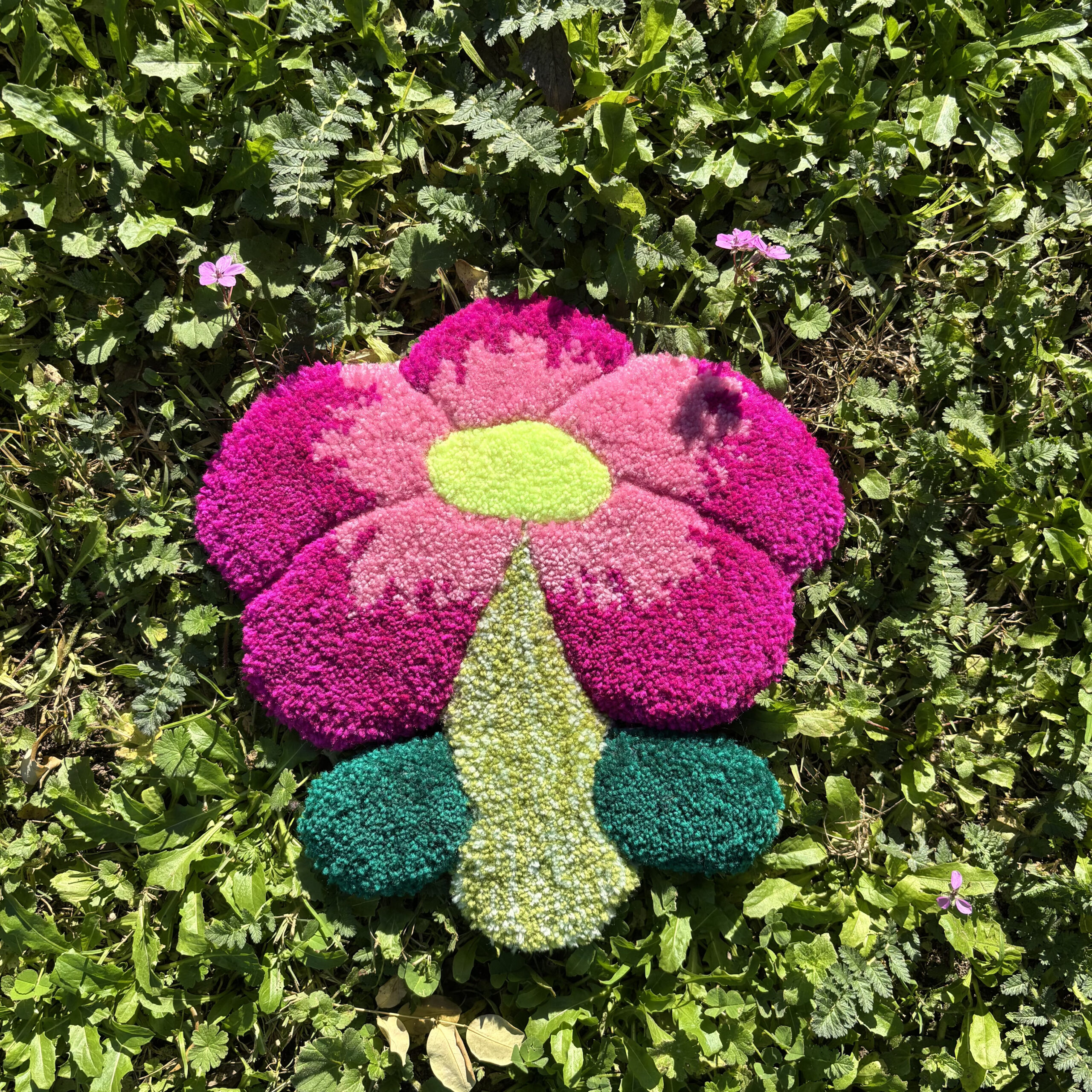 Tapis au design original de Carla, fabriqué entièrement à la main grâce à la technique du tufting.