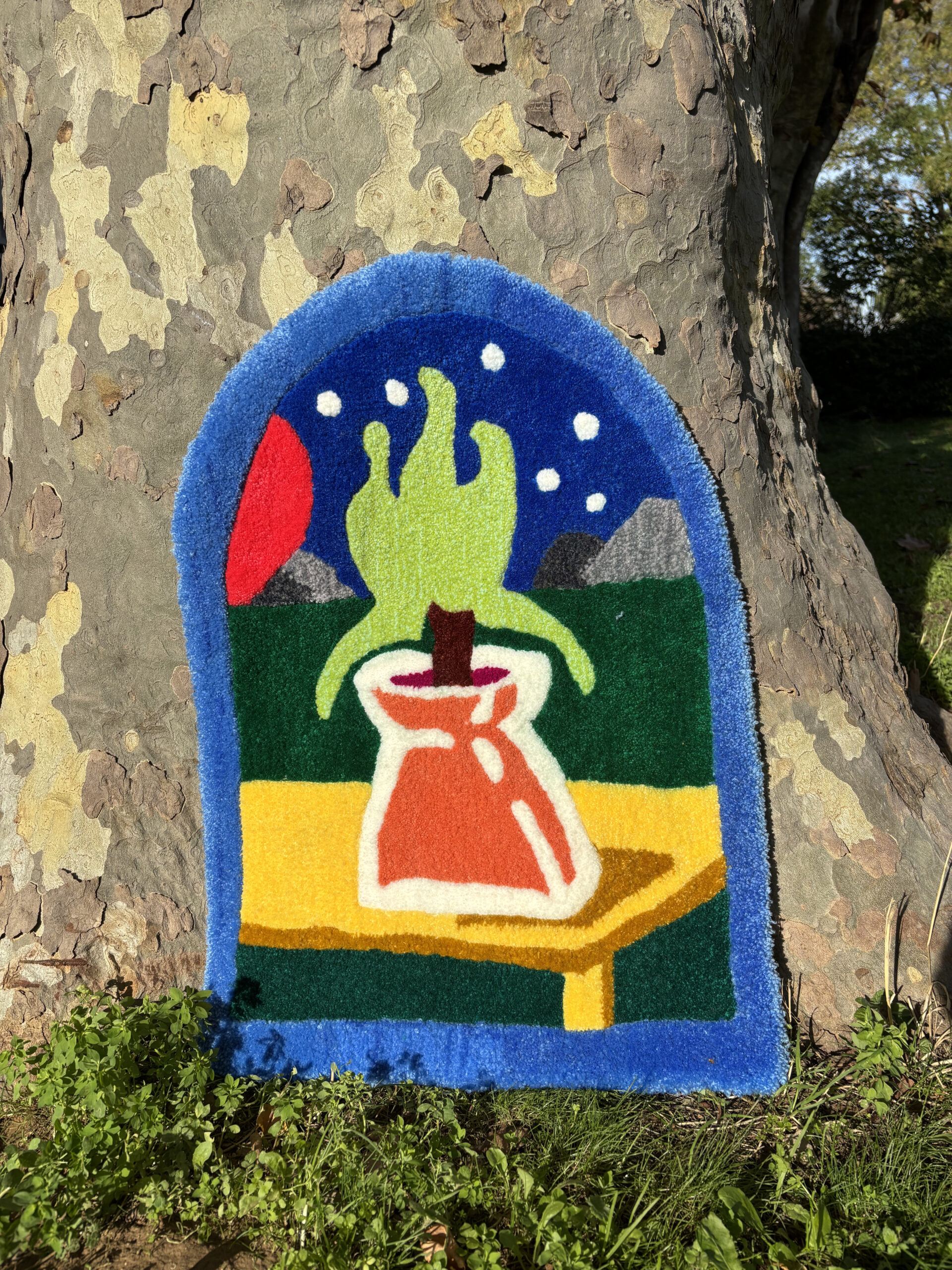 Tapis fait main au design original de Roméo, fabriqué entièrement à la main grâce à la technique du tufting.